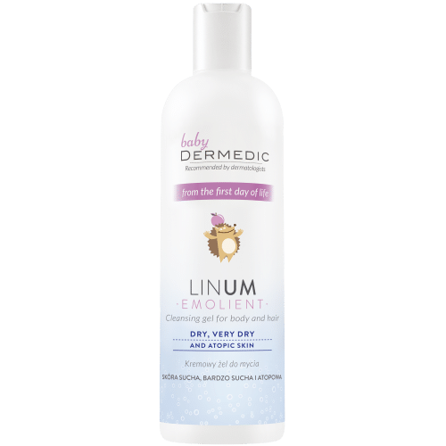 Gel je razvijen za svakodnevno pranje tijela i kose dojenčadi. Nježno čisti kožu, bez isušivanja i oštećenja zaštitne lipidne barijere. Ima protivupalna svojstva i svojstva protiv svrbeži. Sastav: laneno ulje s esencijalnim masnim kiselinama Omega 3, Omega 6, Omega 9, prirodni ekstrakt AP, Polyquaterium-7. Ne sadrži sapune, parabene, SLS. Namjena: svakodnevnu higijena tijela i kose djece i dojenčadi od prvog dana života, s vrlo suhom, atopičnom kožom , takođe sa simptomima psorijaze . Upotreba: Nanijeti malu količinu gela na ruke, nježno je umasirati u vlažnu kožu dječijeg tijela i glave, temeljito isprati vodom. Nježno osušiti kožu peškirom, bez trljanja. Nakon toga se preporučuje nanošenje Linum Baby Emolijentnog losiona za tijelo._x000D_