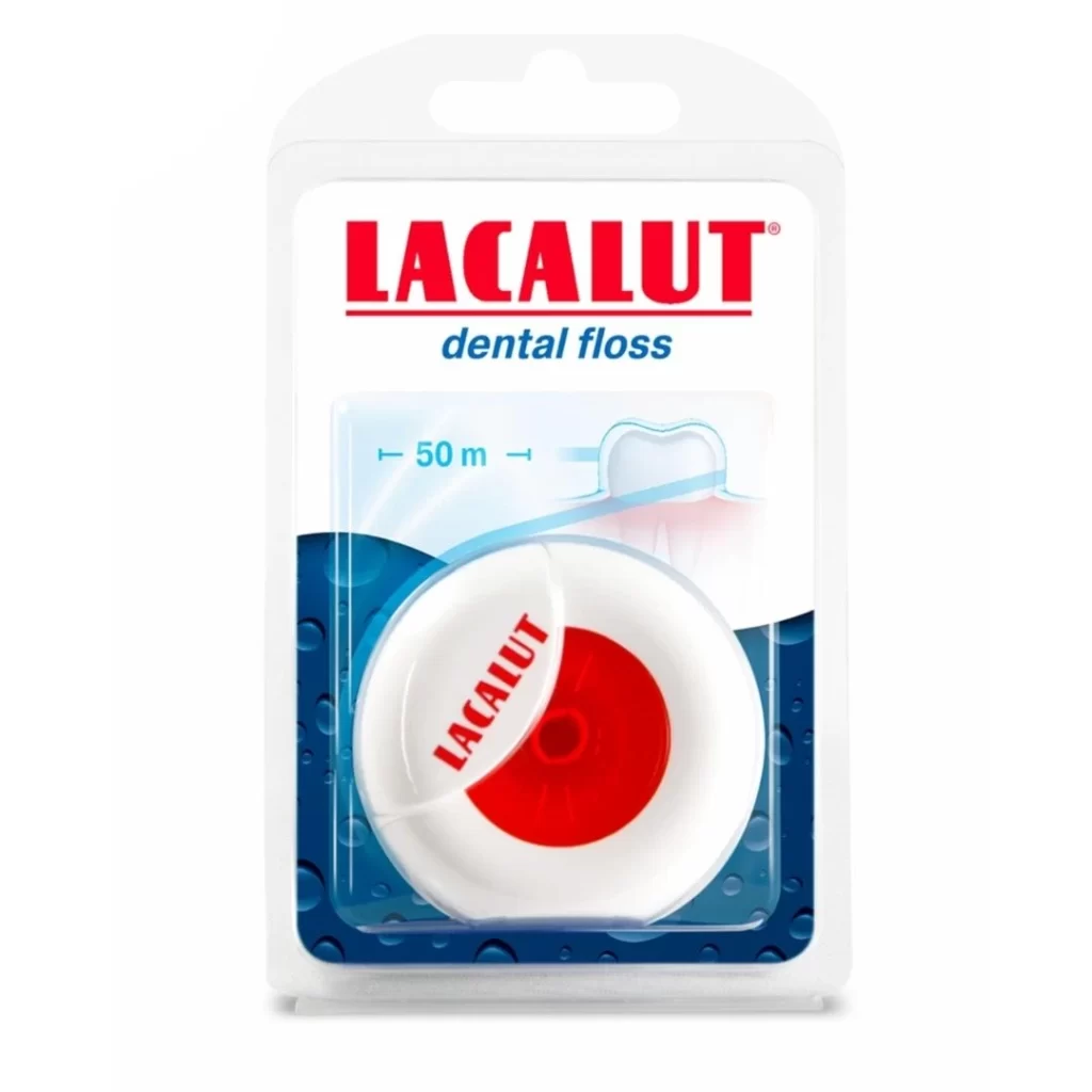 Lacalut konac za zube, sa svježim okusom mente, upotpunit će vašu oralnu higijenu. S lakoćom otklanja ostatke hrane i naslaga, čak između zuba koji su blizu jedan drugom. Ako se redovno koristi, sprječava probleme sa zubima i desnima. Lacalut svileni konac obložen voskom učinkovito čisti i osvježava._x000D_